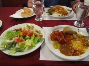 It is an interesting place, with a wide variety and fusion places. They have a place called Bacon Nation that sells everything bacon. They also had restaurants like Italian-Jamaican food, or Chinese-Indian, etc. For lunch we chose Chilean Empanadas, and I had a pulled pork, potato, cheese, tomato, celery Empanada, and it was the best Empanada I’ve ever had. The spinach, potato, and ricotta cheese one was pretty good too. I was still hungry, but more thirsty and I really wanted a smoothie, but they are all so expensive everywhere so I just went to McDonald’s and bought a $2 blueberry pomegranate smoothie, with fries. Then we strolled down Queen Street, and back to the Eaton Center. Dinner time, today was Indian Buffet!