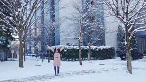 So what the heck?!? It SNOWED IN JAPAN?? That very rarely happens if you aren’t up North! Being Canadian, I’m used to a lot of snow. But Japan clearly isn’t. They really don’t have the infrastructure to deal with it. None of the roads were cleared, even all the schools were closed! Most workplaces had a snow-day, and the next morning people were also advised to stay home. There was about 2 inches of snow, with icy roads. Most people don’t have winter tires for their cars here, and biking on ice is pretty dangerous. But on the bright side, it was really pretty! Kids who have never experienced snow before were outside building snowmen and having snowball fights!
